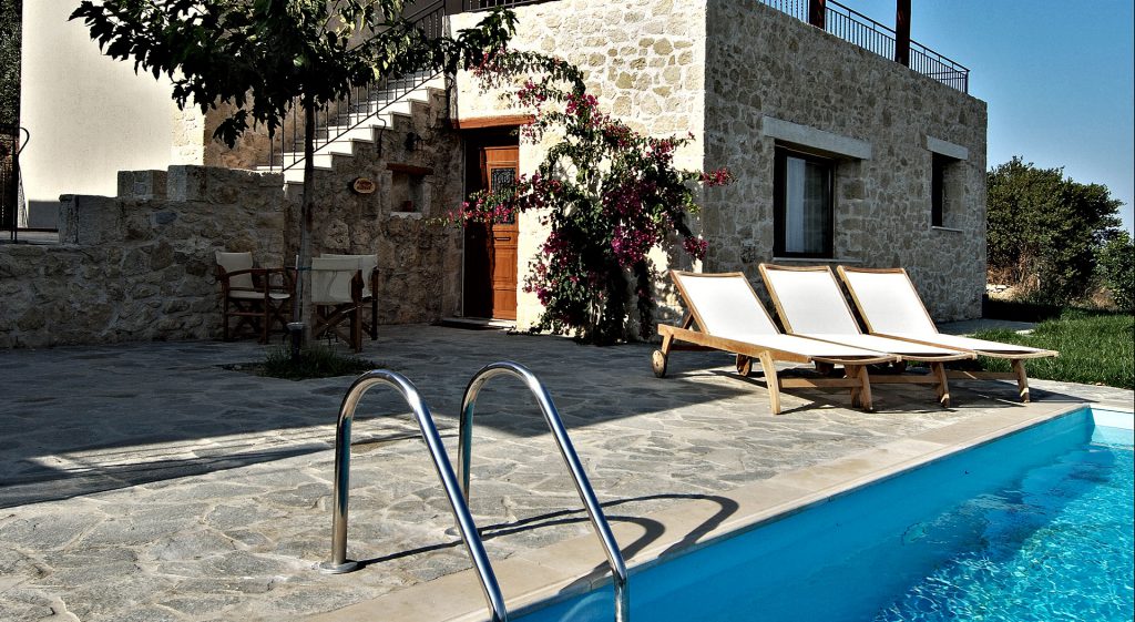 In the shadow of the mythical Mt Psiloritis, the highest mountain of Crete, where according to the Greek mythology God Zeus was raised, lies ELEONAS Country Village. Stretched over a lush slope that is covered with perennial olive trees and enormous carob trees, Eleonas Country Village resembles a small village nestled in the arms of Cretan nature, just a stone’s throw away from the well- known village of Zaros. Stone carved from local craftsmen, the independent guest houses, provide spacious rooms of all types and convenient amenities that address the needs of the modern day traveler. All guesthouses have private terraces that value your privacy and offer beautiful views over the landscape. Under the giant carob tree lies the complex’s pool for relaxing and carefree moments even during Spring and Autumn, since it is a heated one.