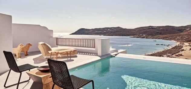 Located right on Agios Ioannis Beach (where the movie Shirley Valentine was filmed), the hotel provides 5-star, boutique accommodation set amidst cobbled paths overlooking Delos Island.