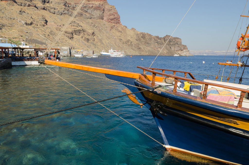 We will take you on a short boat trip to visit Palea and Nea Kameni, the two small islands in the centre of the Santorini caldera, “the volcano” according to the locals, the youngest volcanic lands in the Eastern Mediterranean.